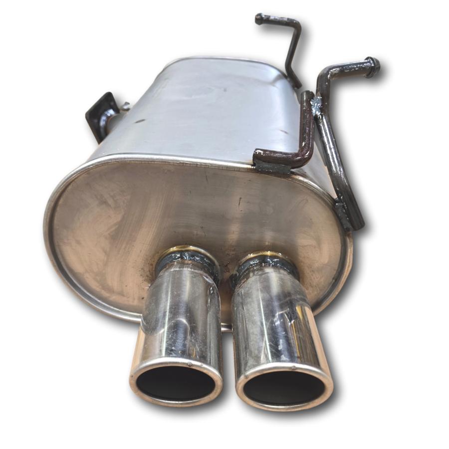 fits 3.0L V6 from 2007 through to 2013 direct fit rear muffler assembly. Item is 100% new, near IDENTICAL copy of the OEM Mitsubishi part, includes polished tips! Made from 409 stainless steel muflfer body!, Includes gasket and bolt kit !