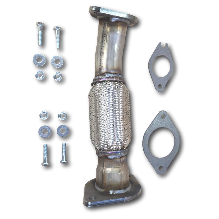 OEM replacement Saturn Aura XE and XR front exhaust flex pipe. Fits all 2.4L models from 2009 with 6 speed automatic transmission ONLY. 2 bolt welded inlet flange and 2 bolt outlet flange. Stainless steel flex connector has inner liner for increased strength and durability. Mandrel bent tubing ensures proper flow, sound, and fuel economy. Item includes FREE gaskets with purchase