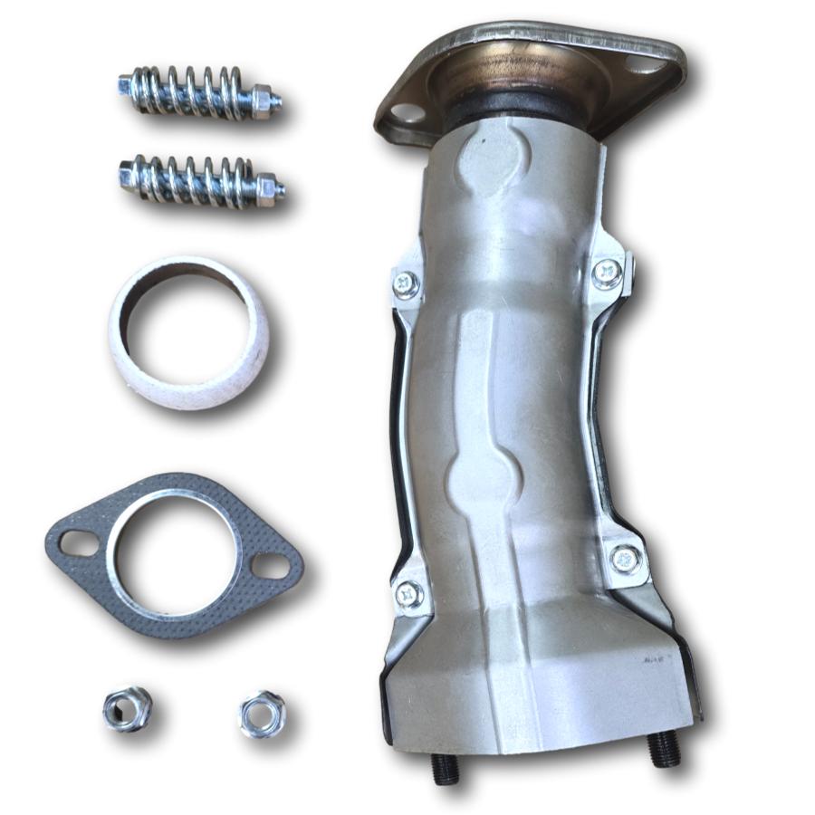 Fits all 2.0L non-turbo FEDERAL emissions models from 2008 through to 2017.  Item is constructed from 409 stainless steel tubing.   Mandrel bent tubing ensures proper flow, sound, and fuel economy.  Near IDENTICAL copy of the OEM Mitsubishi part, right down to the heat shield included!  GASKETS AND HARDWARE PICTURED INCLUDED WITH PURCHASE