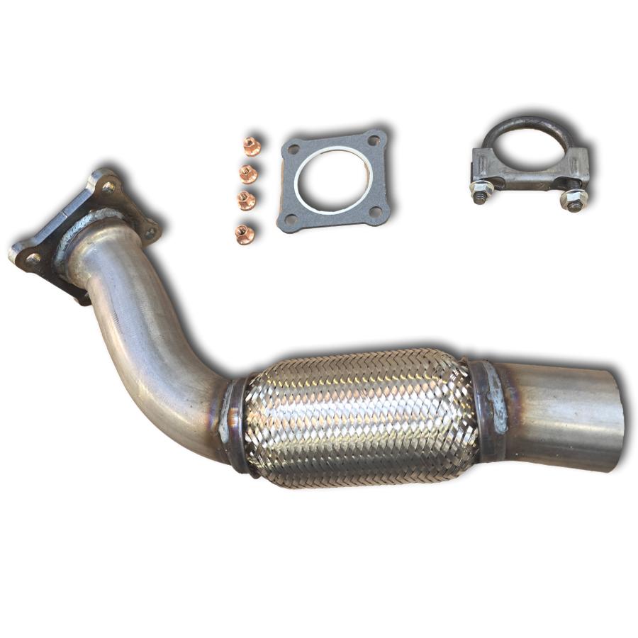 VW Beetle 2.0L converter repair pipe- works on all 2.0L models with 4 bolt manifold flange, except models with air fitting close to flange- designed to replace your broken or leaking flex and save the existing converter portion- save big $$ over replacing entire converter assembly- item is expanded to 2" ID and designed to slide over existing downpipe once cut- welding and or modifications may be required in certain instances, ie. previously modified exhaust. 409 stainless steel tubing and flex. FREE gasket, copper sealing nuts and muffler clamp included with purchase